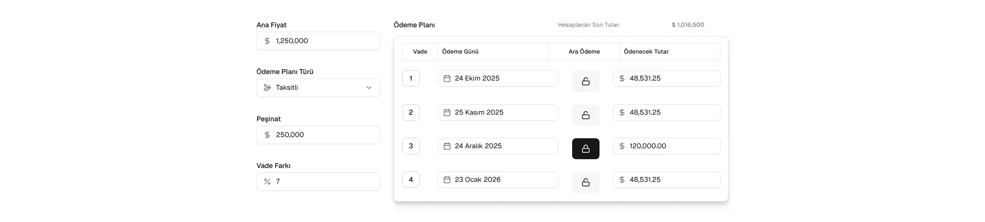 Müşterinize özel taksit ve nakit otomatik ödeme planı
